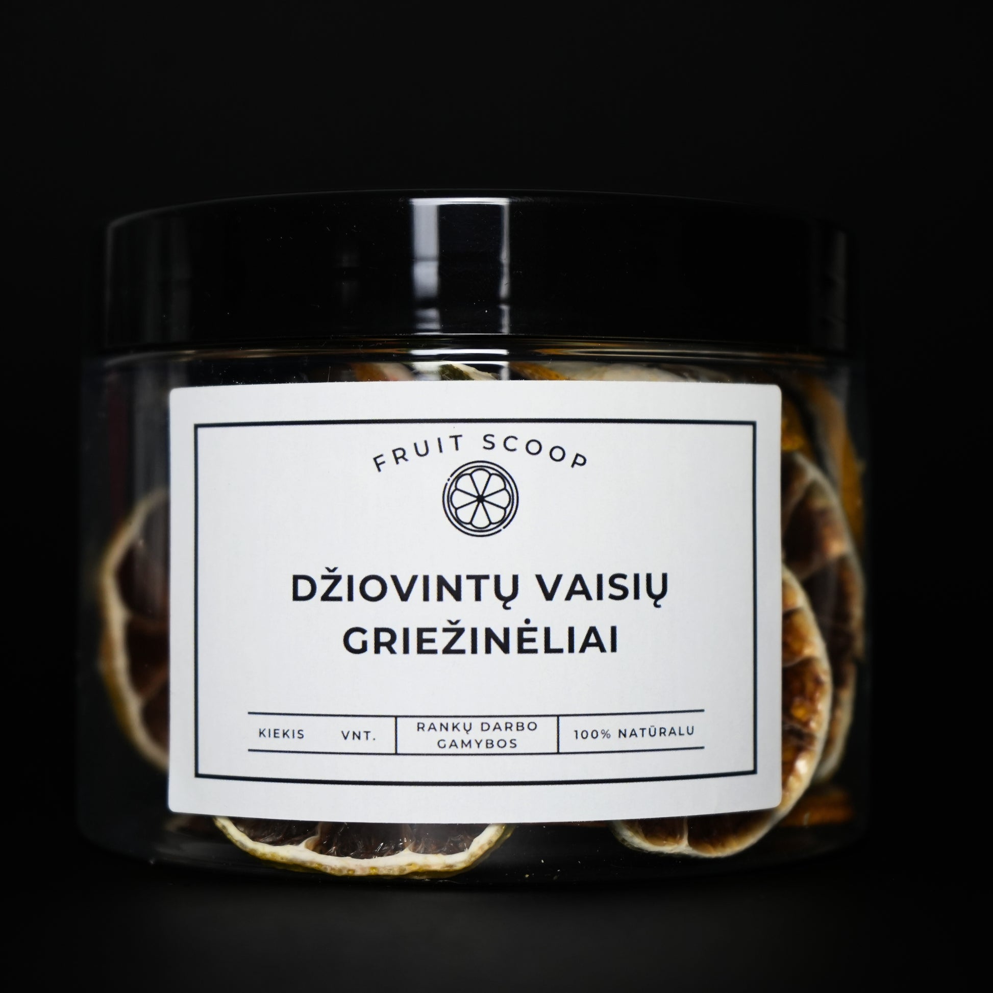 Džiovintų vaisių mix – įvairių citrusinių vaisių rinkinys, sukurtas dekoracijoms ir kūrybiškiems sprendimams.